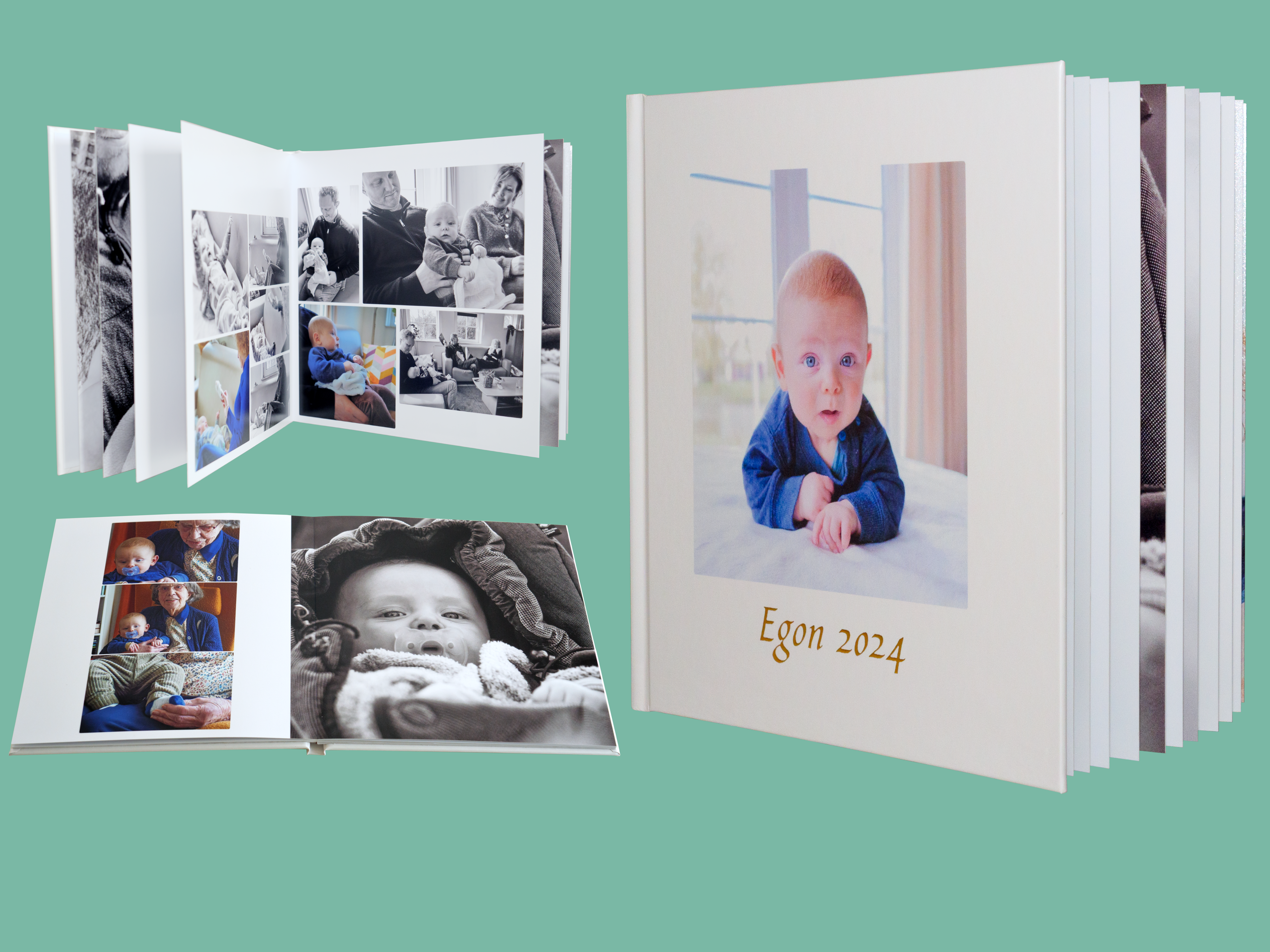voorbeeld album: harde kaft, gouden opdruk, zijdemat fotopapier